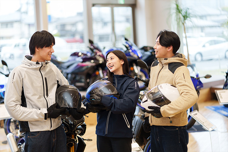 快適・安全なライディングのために、ヘルメット選びは店頭でフィッティングを行い、自分にあったサイズを選びましょう。
